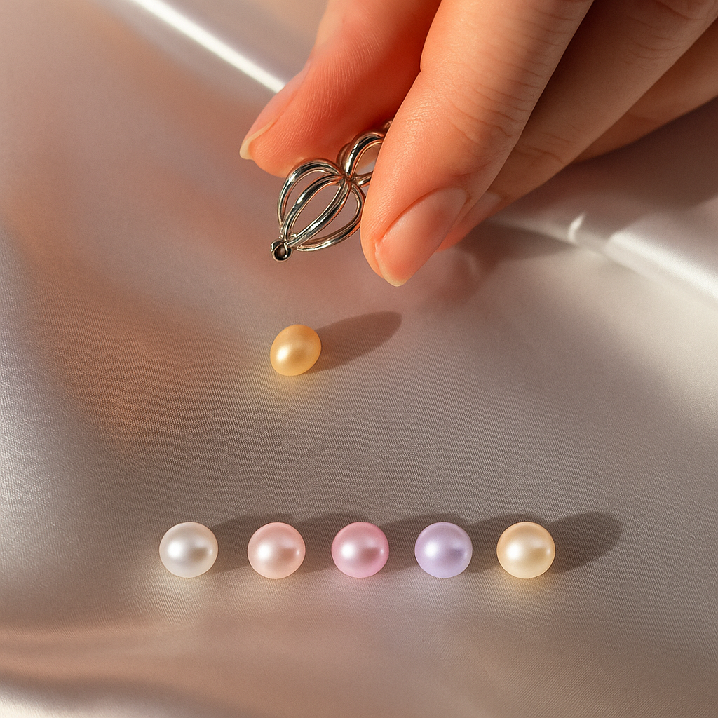 W niej – naturalna perła, gotowa do osadzenia w eleganckim wisiorku z zestawu.